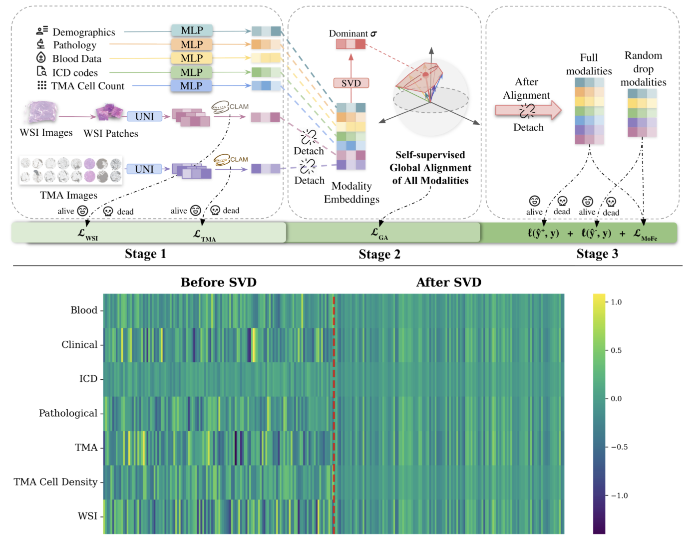 I study learning dynamics in multimodal biomedical AI systems, with a focus on survival prediction and risk modeling under heterogeneous and missing-modality settings. Using data such as histopathology images, structured clinical variables, and molecular signals, I investigate how architectural design and optimization strategies transform partially observed, noisy inputs into stable and learnable decision representations.